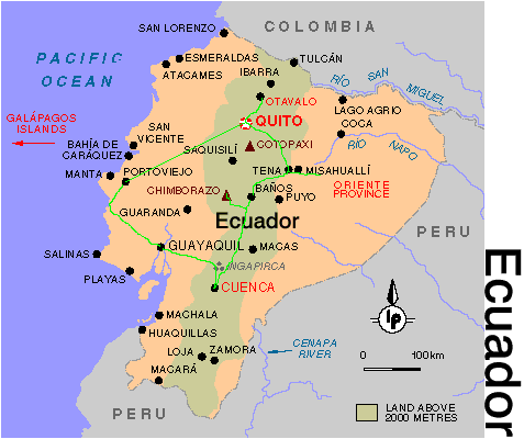 De route die wij gevolgd hebben door Ecuador is op onderstaande kaart aangegeven: